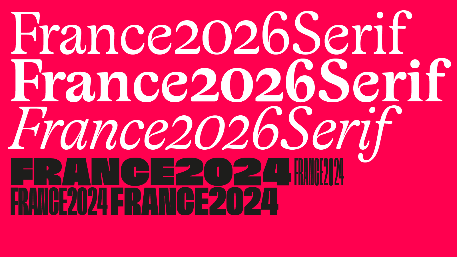 8France 2026 Serif is the official typeface of the French team to be used together with France 2024 Sans. While France 2024 Sans is rigorous and massive, France 2026 Serif wants to be more human, fluid. These two families respond to different practices.
